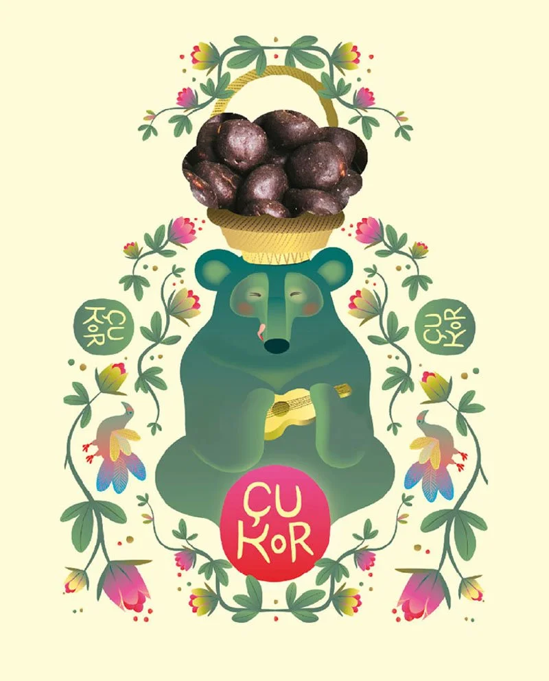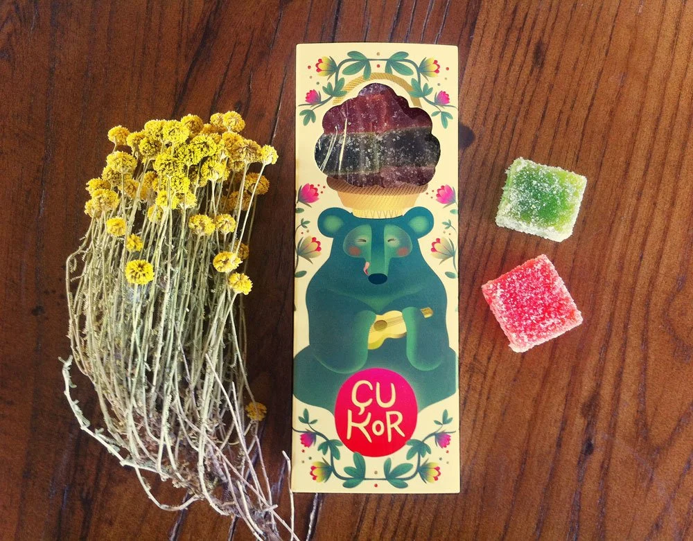 Concepto visual y elaboración de ilustración y packaging para cajita de caramelos para la tienda - taller Çukor, Barcelona